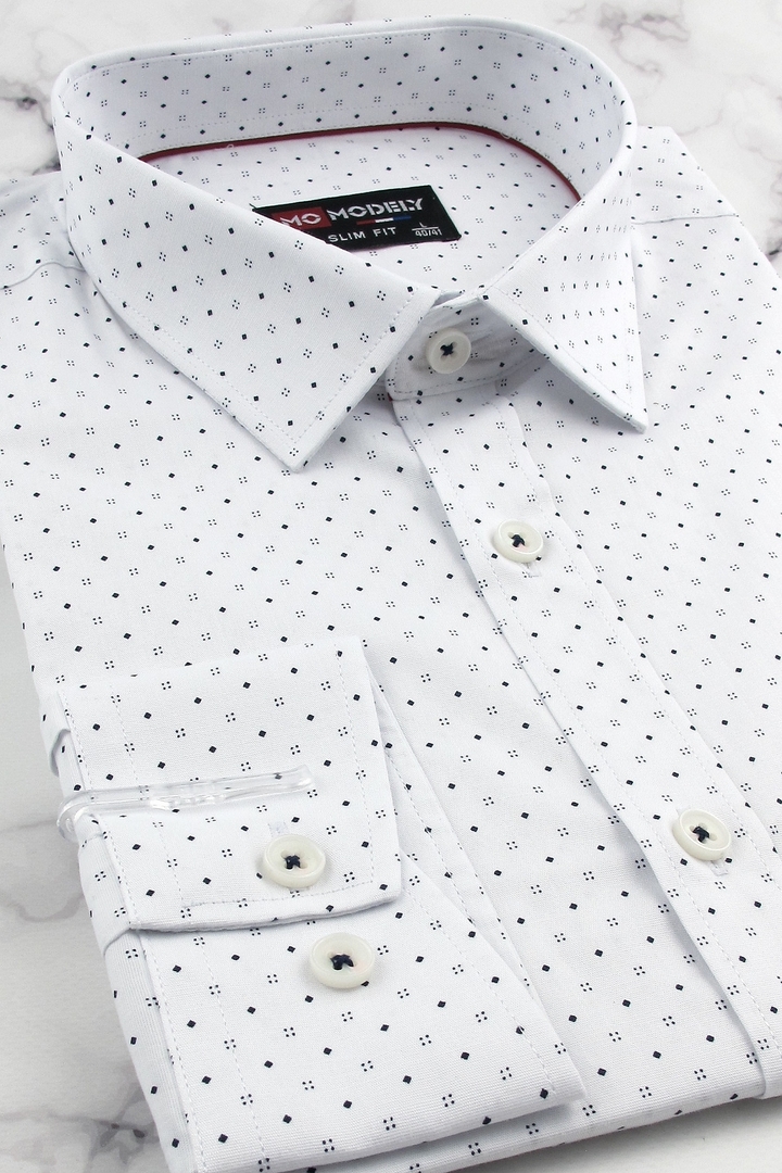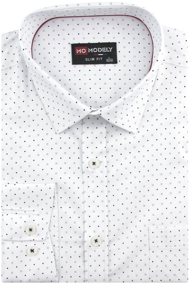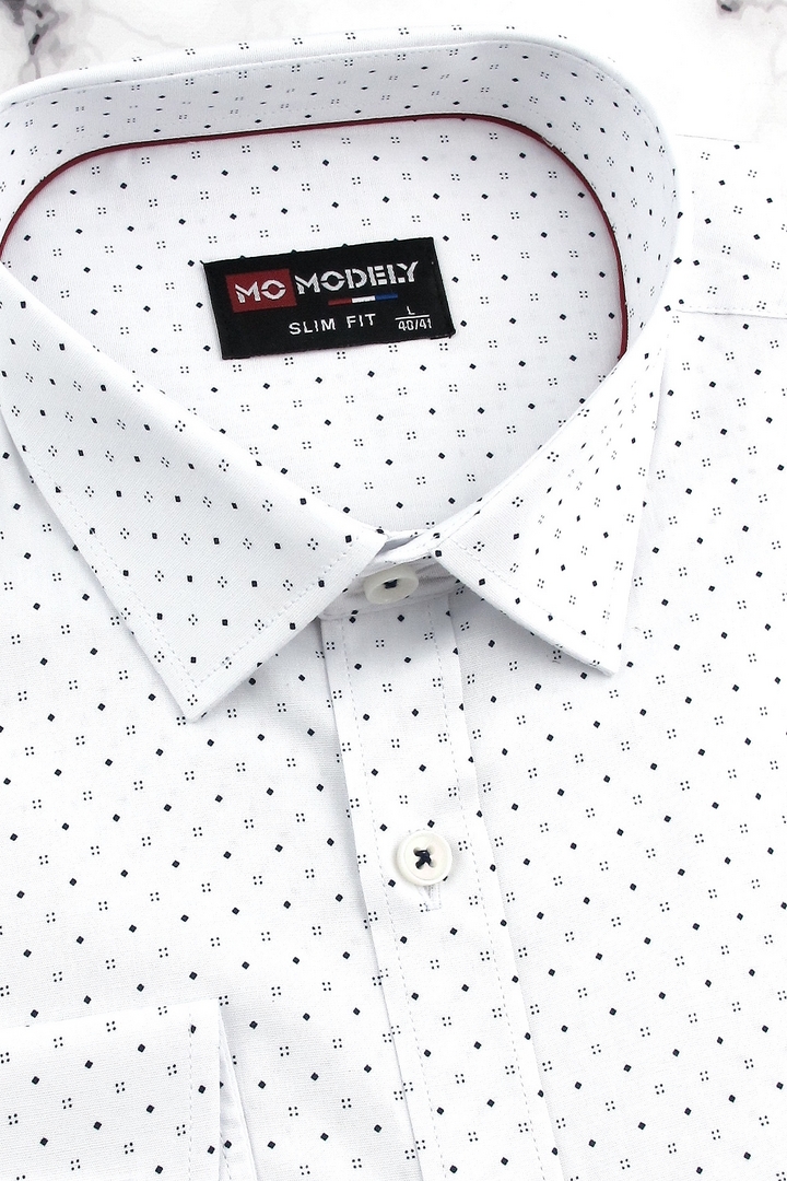 Koszula Męska Elegancka Wizytowa do garnituru biała we wzorki z długim rękawem w kroju SLIM FIT Modely J916