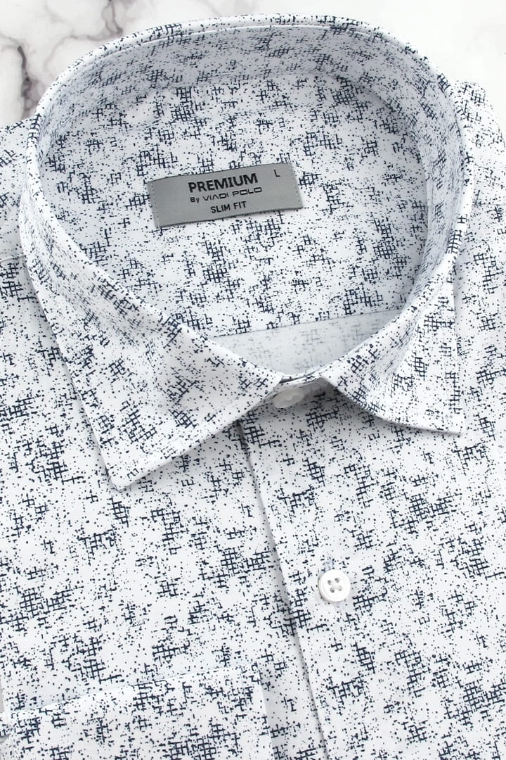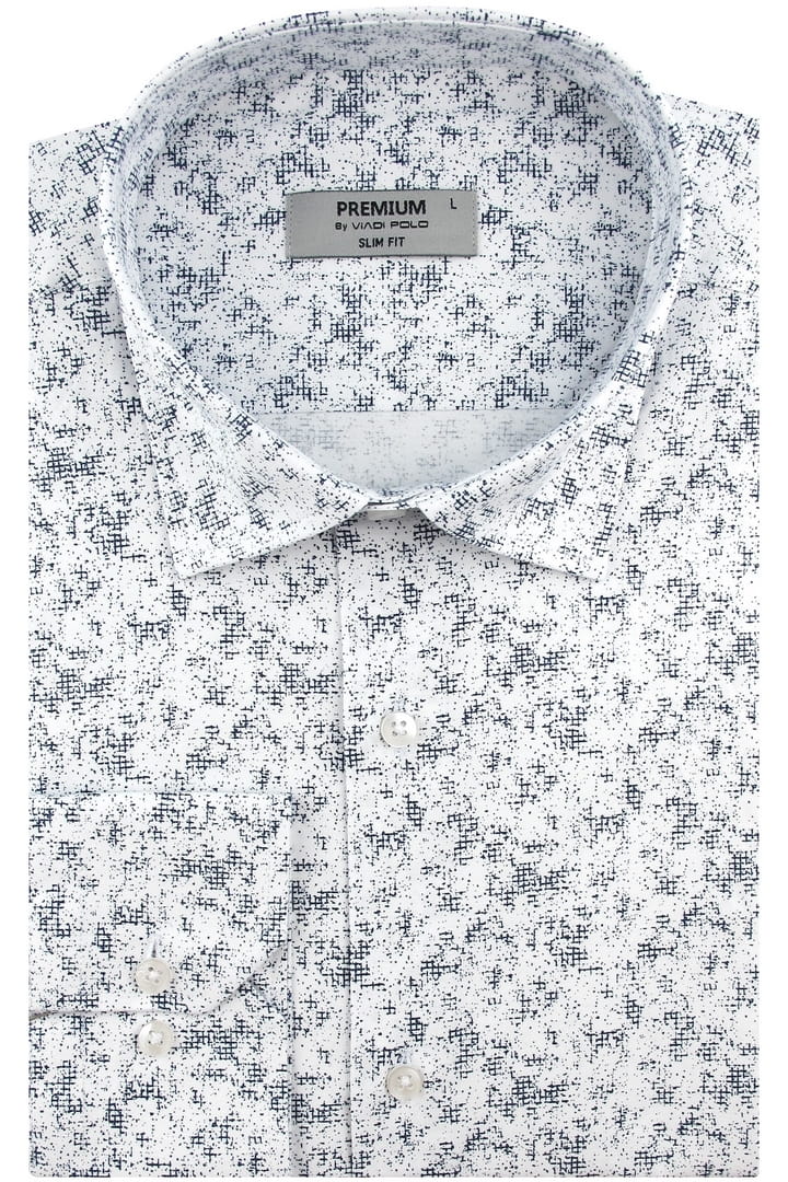 Koszula Męska Elegancka Wizytowa do garnituru biała we wzorki z długim rękawem w kroju SLIM FIT Viadi Polo H270