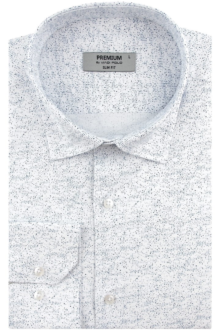 Koszula Męska Elegancka Wizytowa do garnituru biała we wzorki z długim rękawem w kroju SLIM FIT Viadi Polo H274