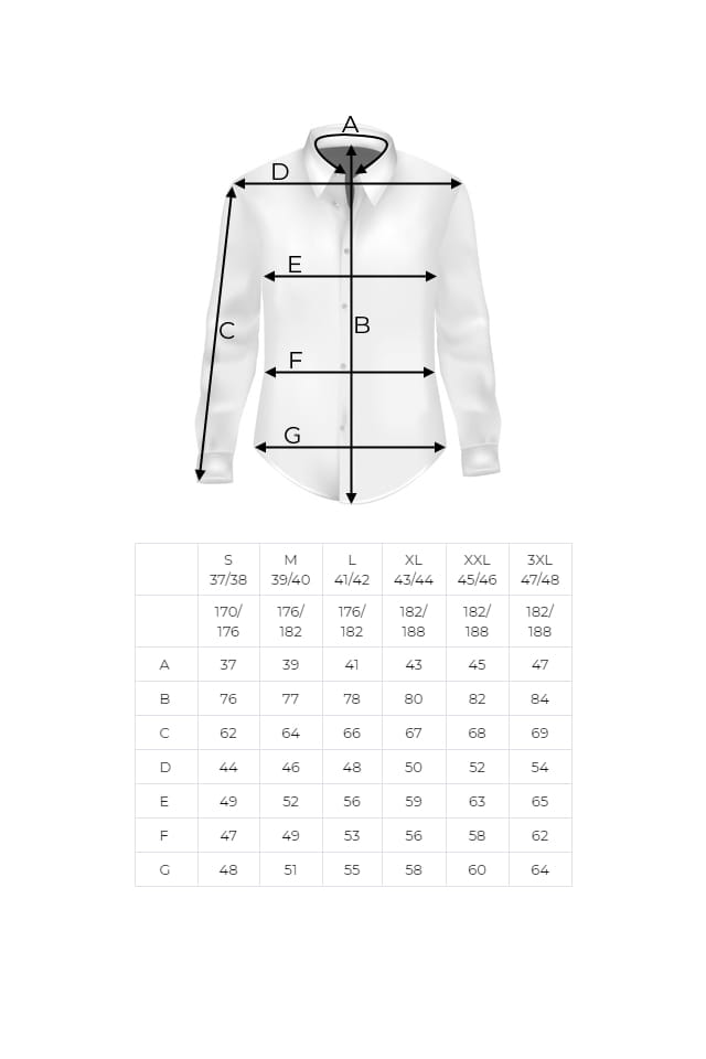 - Każdą koszulę staramy się mierzyć jak najdokładniej. Mierzona jest tylko jedna sztuka z danego modelu oraz rozmiaru, dlatego mogą wystąpić minimalne różnice w wymiarach podanych w tabeli (tolerancja do +/- 2 cm)