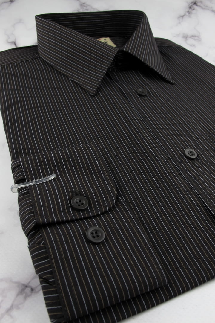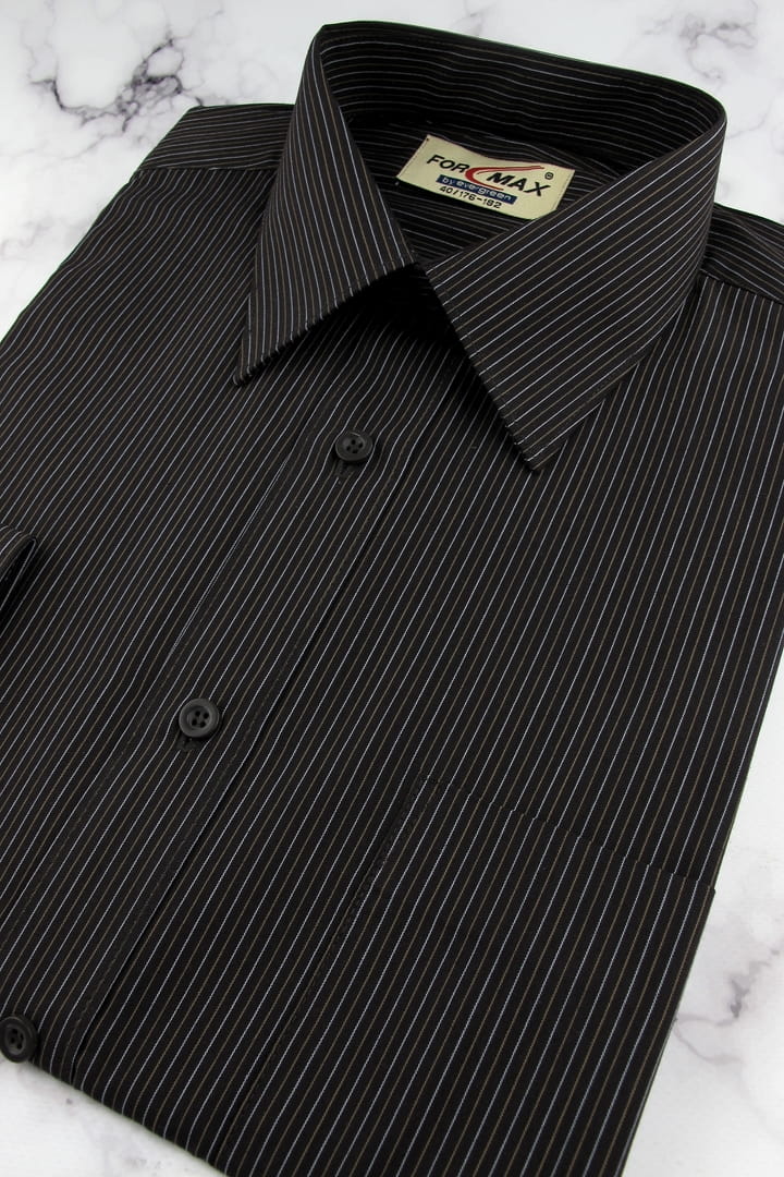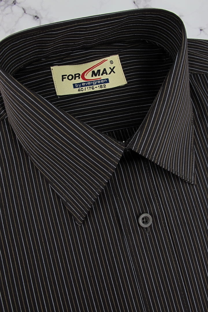 Koszula Męska Elegancka Wizytowa do garnituru brązowa w paski z długim rękawem w kroju REGULAR Formax F028