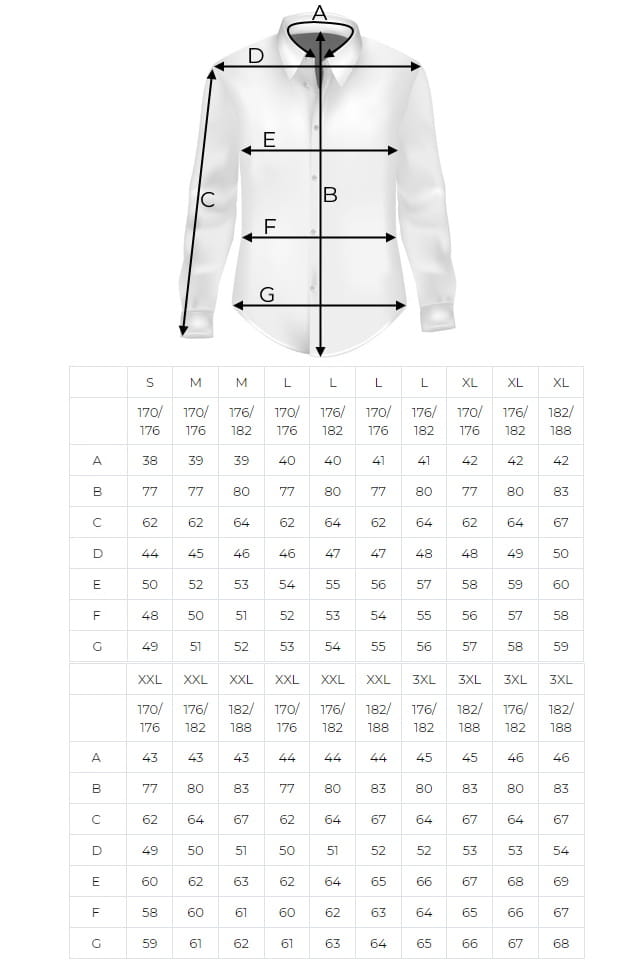 - Każdą koszulę staramy się mierzyć jak najdokładniej. Mierzona jest tylko jedna sztuka z danego modelu oraz rozmiaru, dlatego mogą wystąpić minimalne różnice w wymiarach podanych w tabeli (tolerancja do +/- 2 cm)