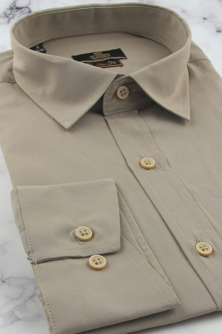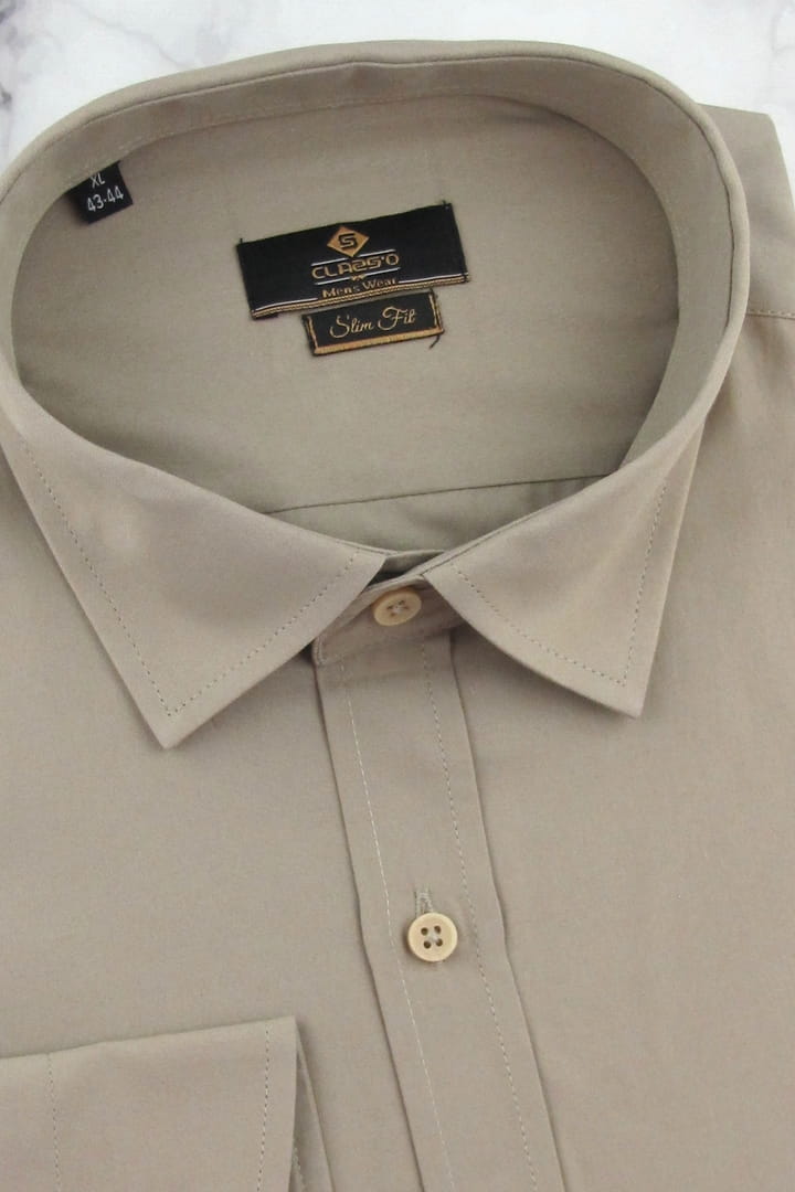 Koszula Męska Elegancka Wizytowa do garnituru gładka beżowa z długim rękawem w kroju SLIM FIT Classo J380