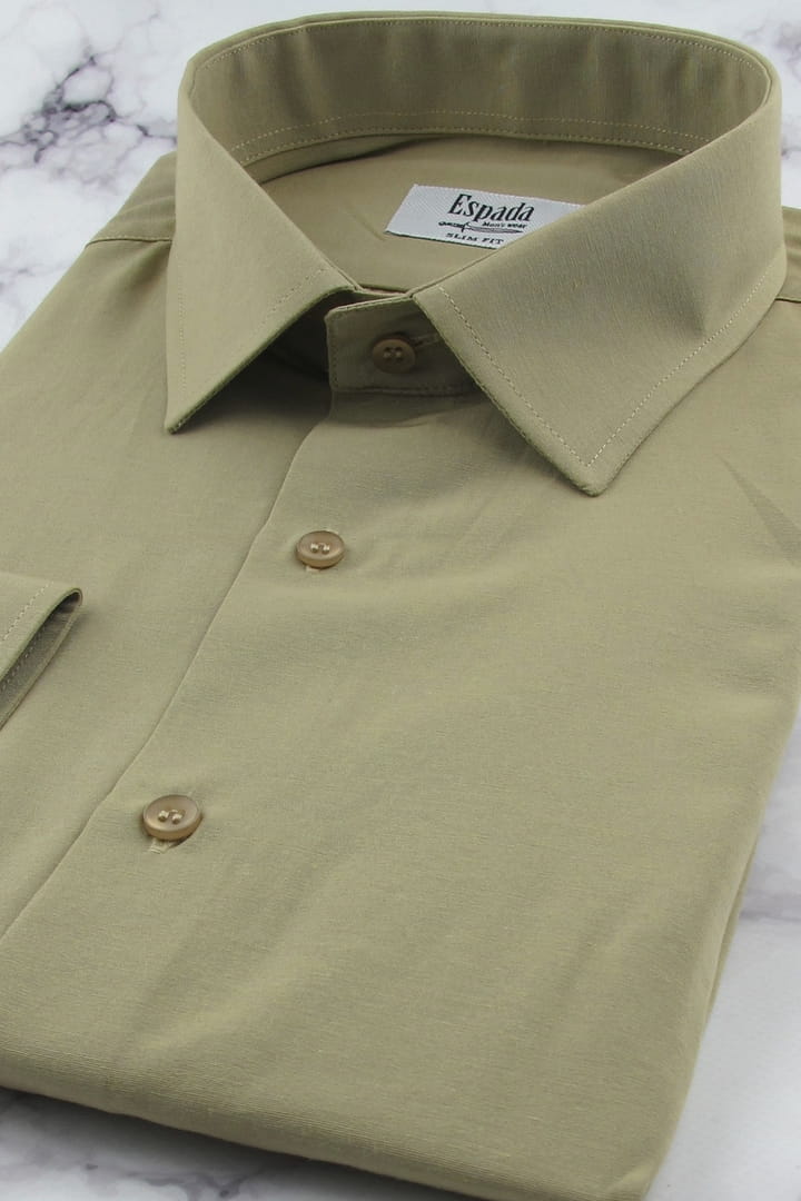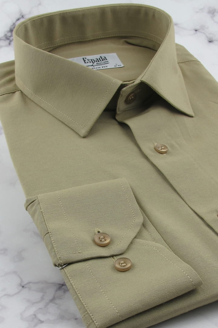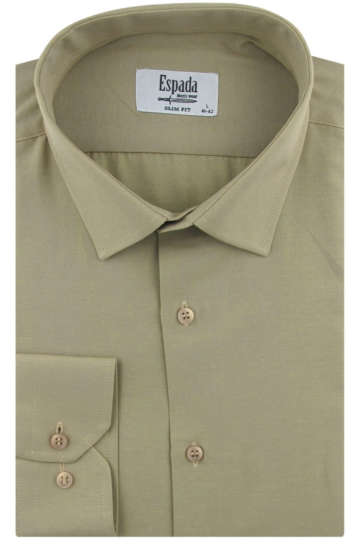 Koszula Męska Elegancka Wizytowa do garnituru gładka beżowa z długim rękawem w kroju SLIM FIT Espada Men's Wear H450