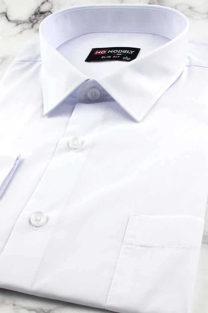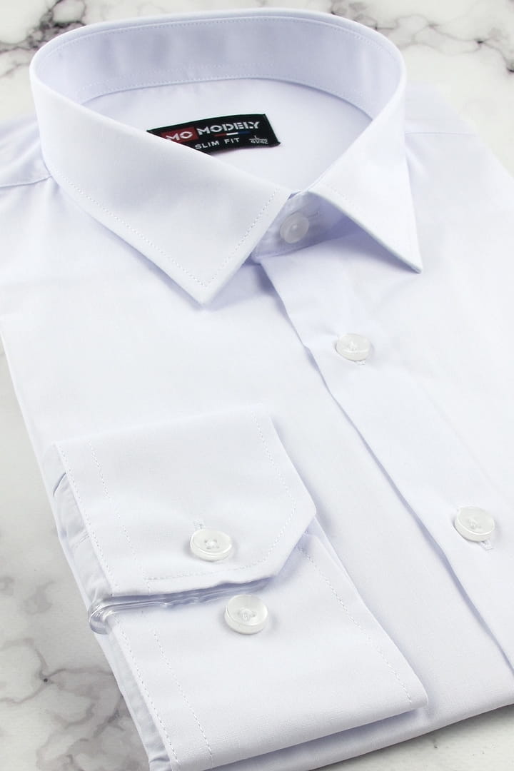 Koszula Męska Elegancka Wizytowa do garnituru gładka biała z długim rękawem w kroju SLIM FIT Modely J922