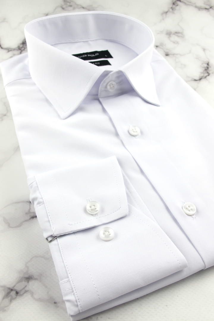 Koszula Męska Elegancka Wizytowa do garnituru gładka biała z długim rękawem w kroju SLIM FIT Viadi Polo J382