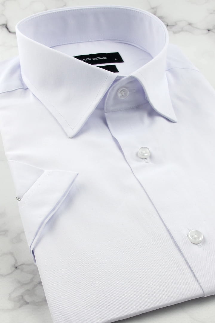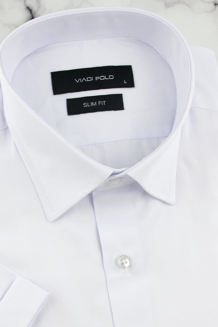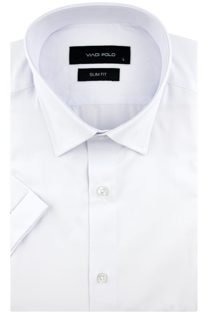 Koszula Męska Elegancka Wizytowa do garnituru gładka biała z krótkim rękawem w kroju SLIM FIT Viadi Polo R075