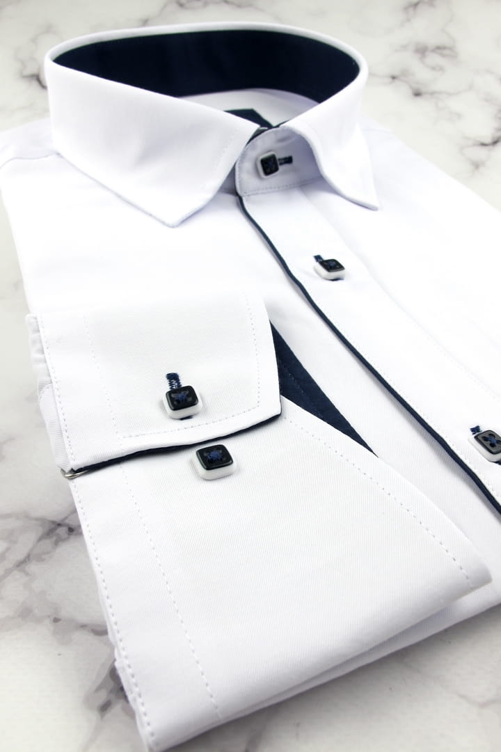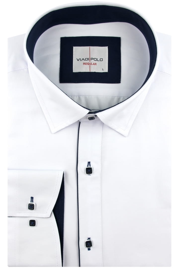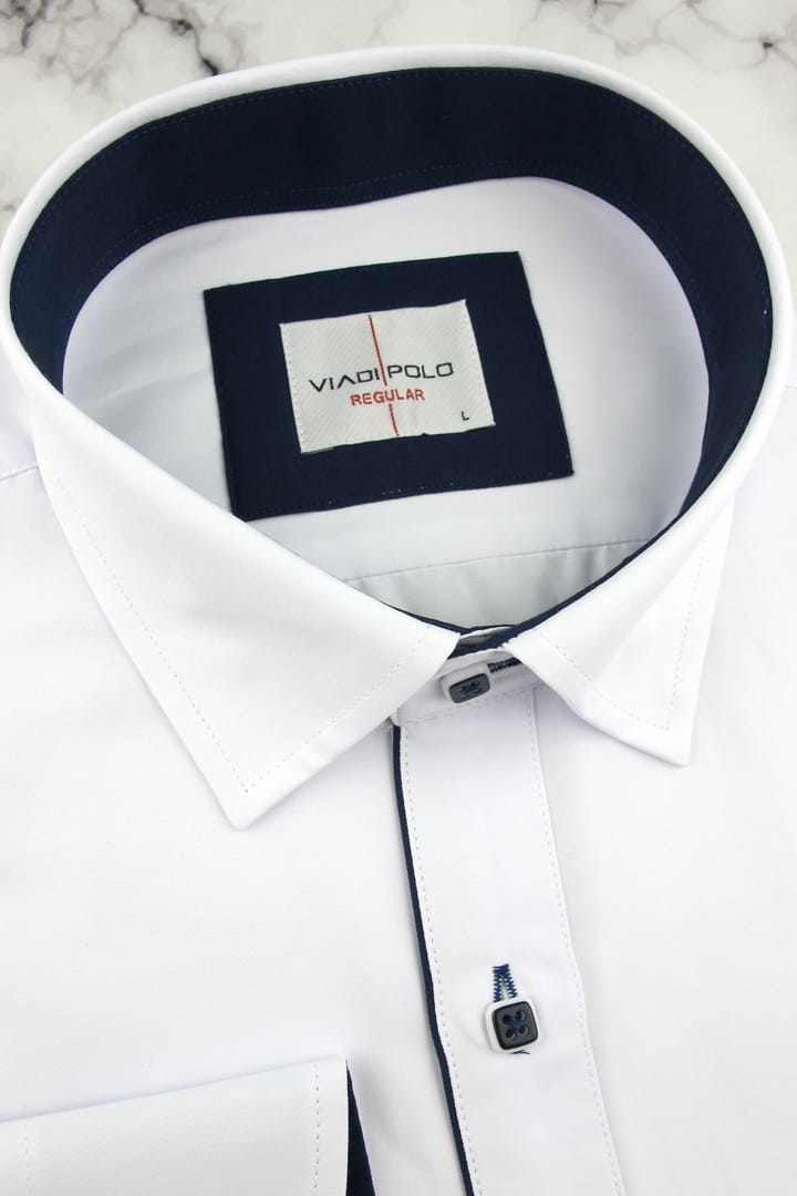 Koszula Męska Elegancka Wizytowa do garnituru gładka biała z lamówką z długim rękawem w kroju REGULAR Viadi Polo J633