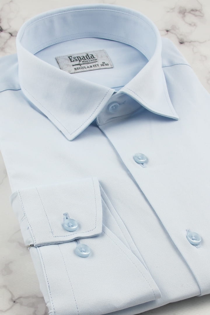 Koszula Męska Elegancka Wizytowa do garnituru gładka błękitna z długim rękawem w kroju REGULAR FIT Espada Men's Wear H723