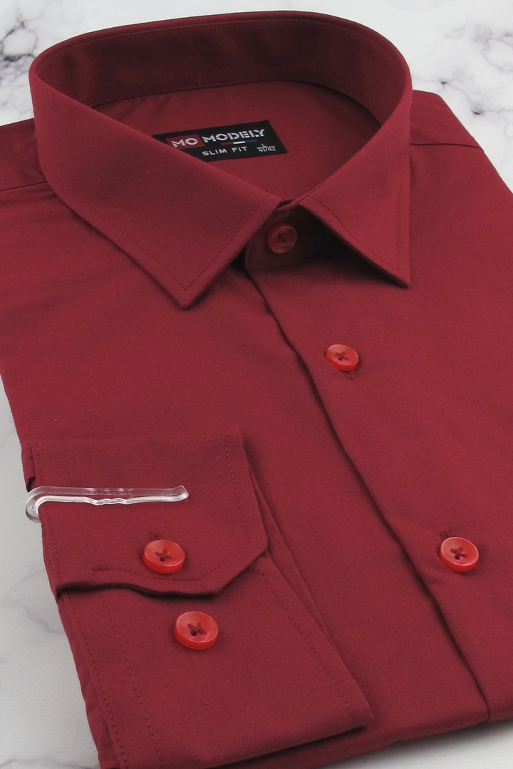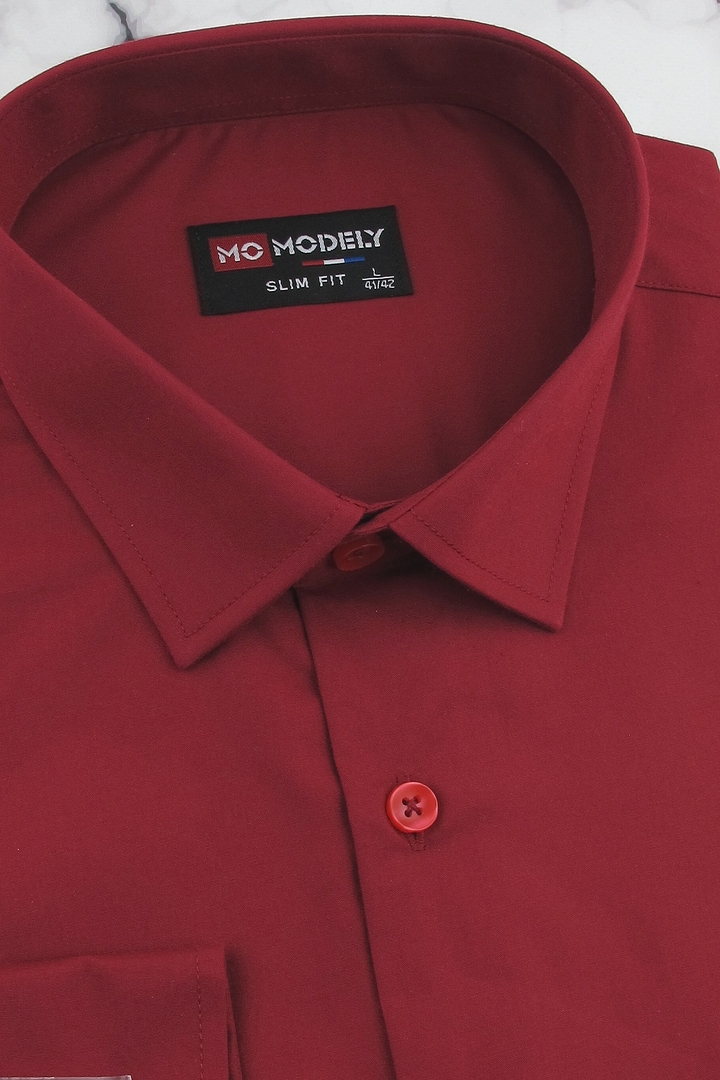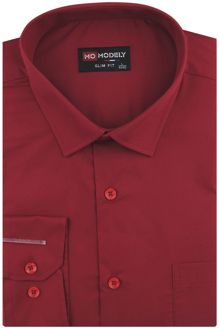 Koszula Męska Elegancka Wizytowa do garnituru gładka bordowa z długim rękawem w kroju SLIM FIT Modely J920