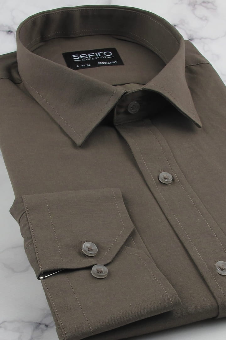 Koszula Męska Elegancka Wizytowa do garnituru gładka brązowa z długim rękawem w kroju REGULAR Sefiro S110