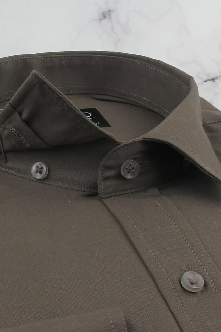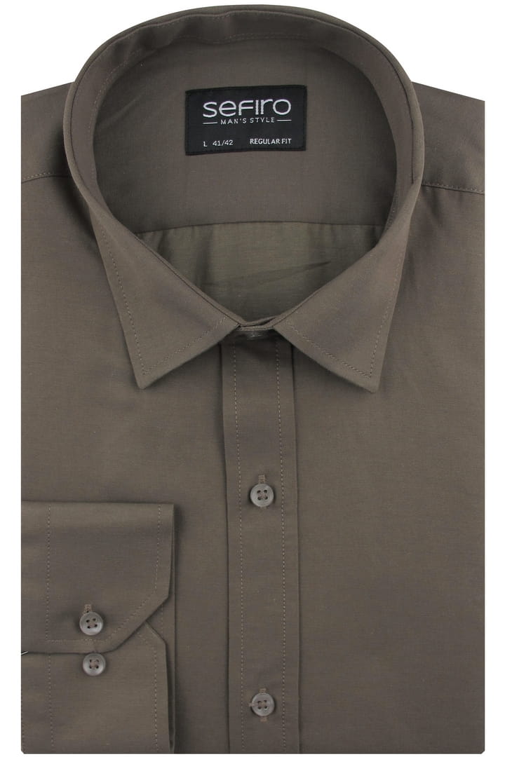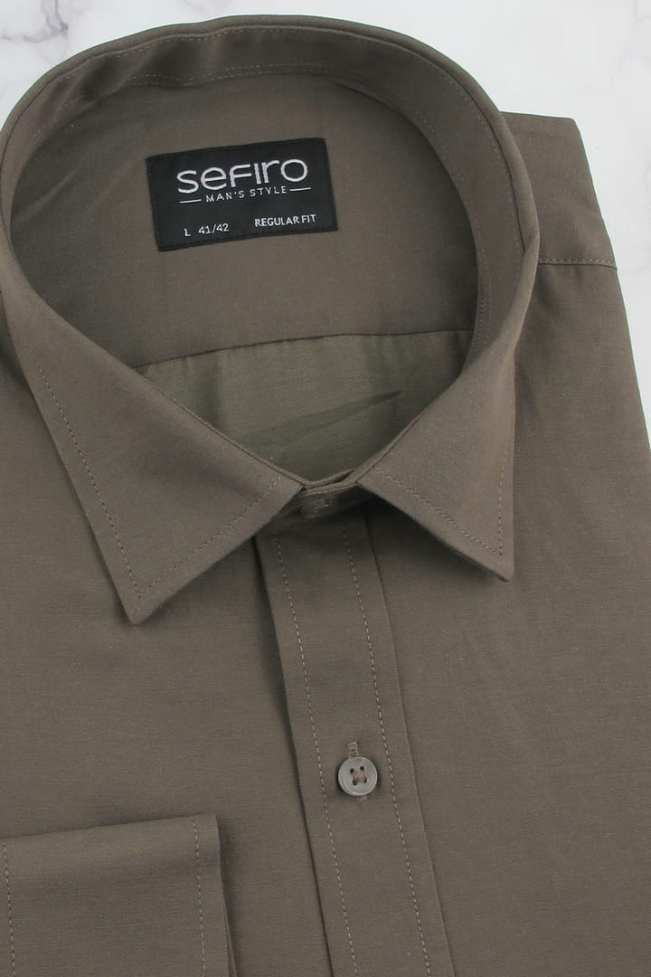 Koszula Męska Elegancka Wizytowa do garnituru gładka brązowa z długim rękawem w kroju SLIM FIT Sefiro S122