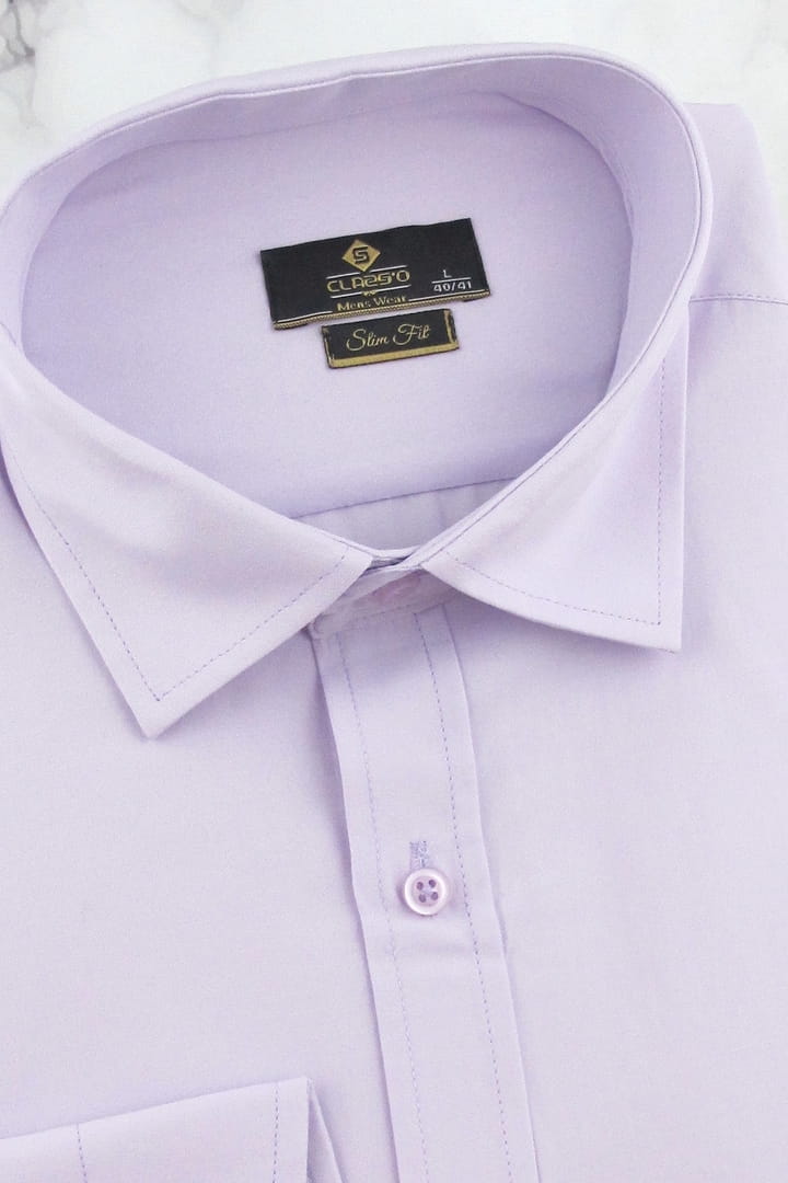 Koszula Męska Elegancka Wizytowa do garnituru gładka fioletowa z długim rękawem w kroju SLIM FIT Classo J378