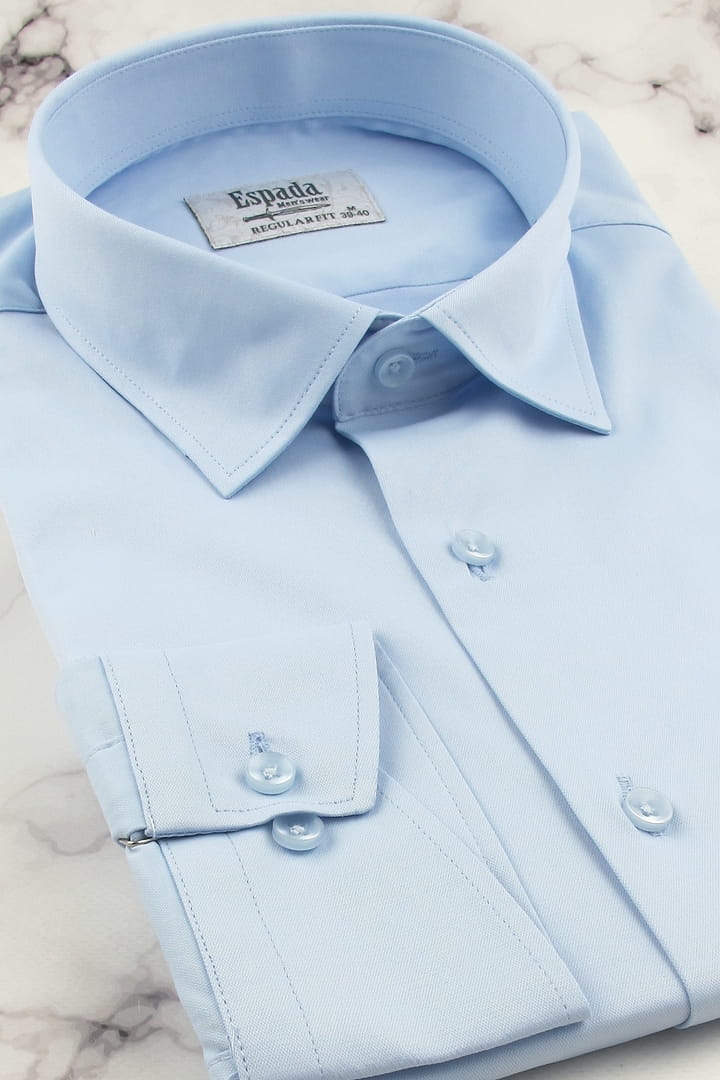Koszula Męska Elegancka Wizytowa do garnituru gładka niebieska z długim rękawem w kroju REGULAR FIT Espada Men's Wear H721