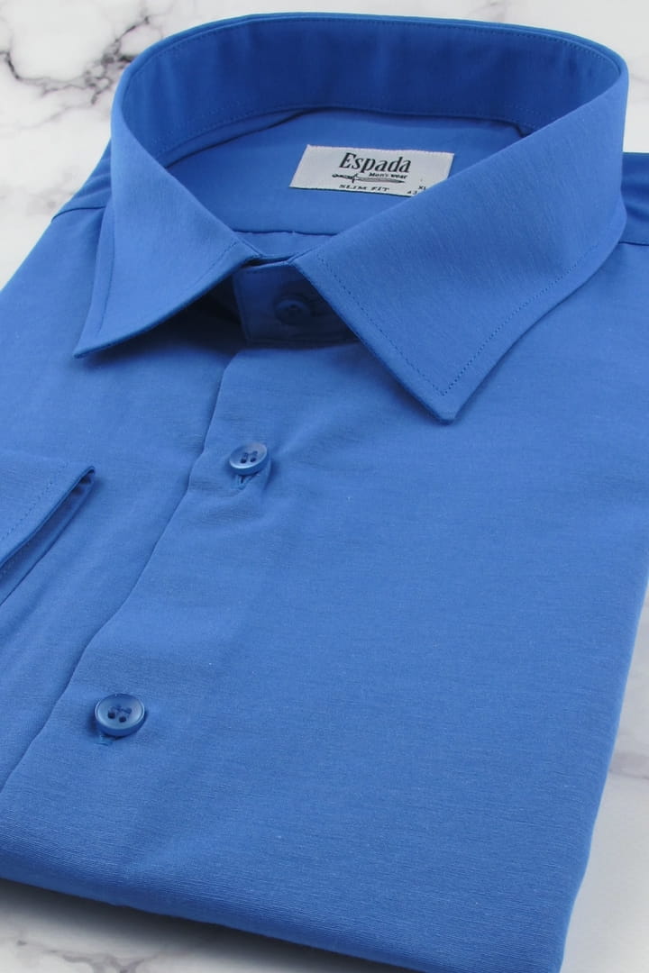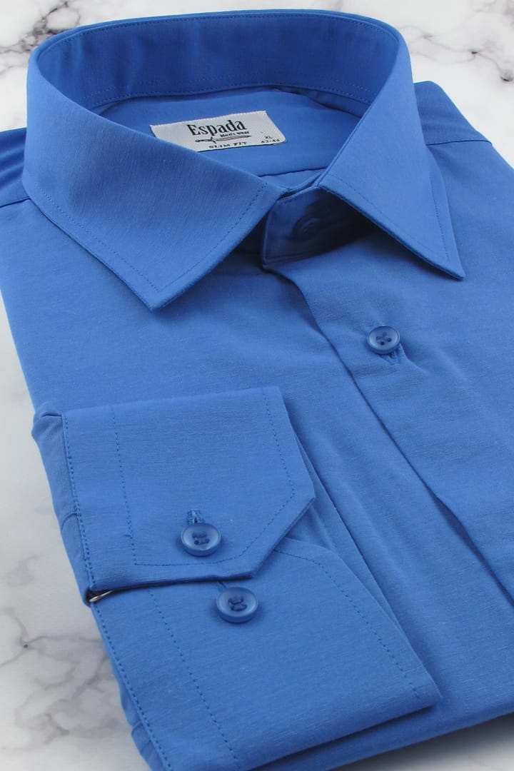 Koszula Męska Elegancka Wizytowa do garnituru gładka niebieska z długim rękawem w kroju SLIM FIT Espada Men's Wear J298