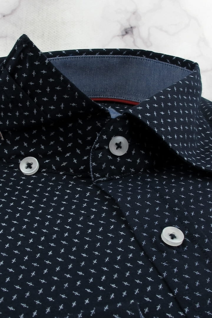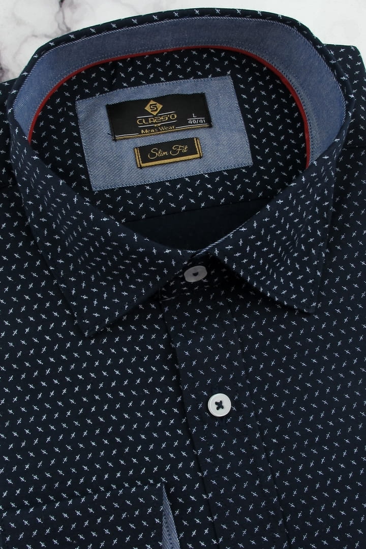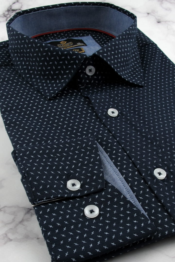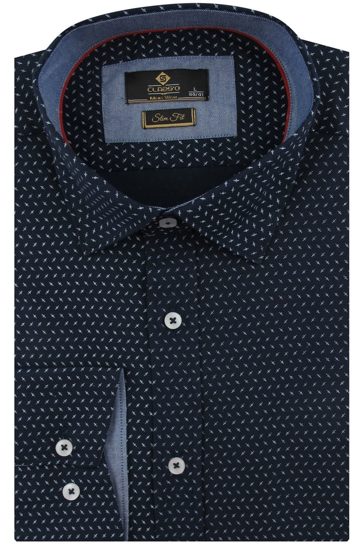 Koszula Męska Elegancka Wizytowa do garnituru granatowa we wzorki z długim rękawem w kroju SLIM FIT Classo H245