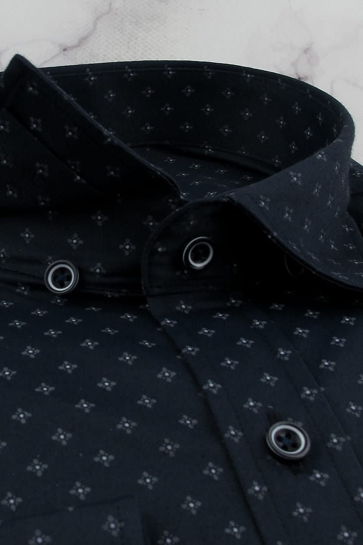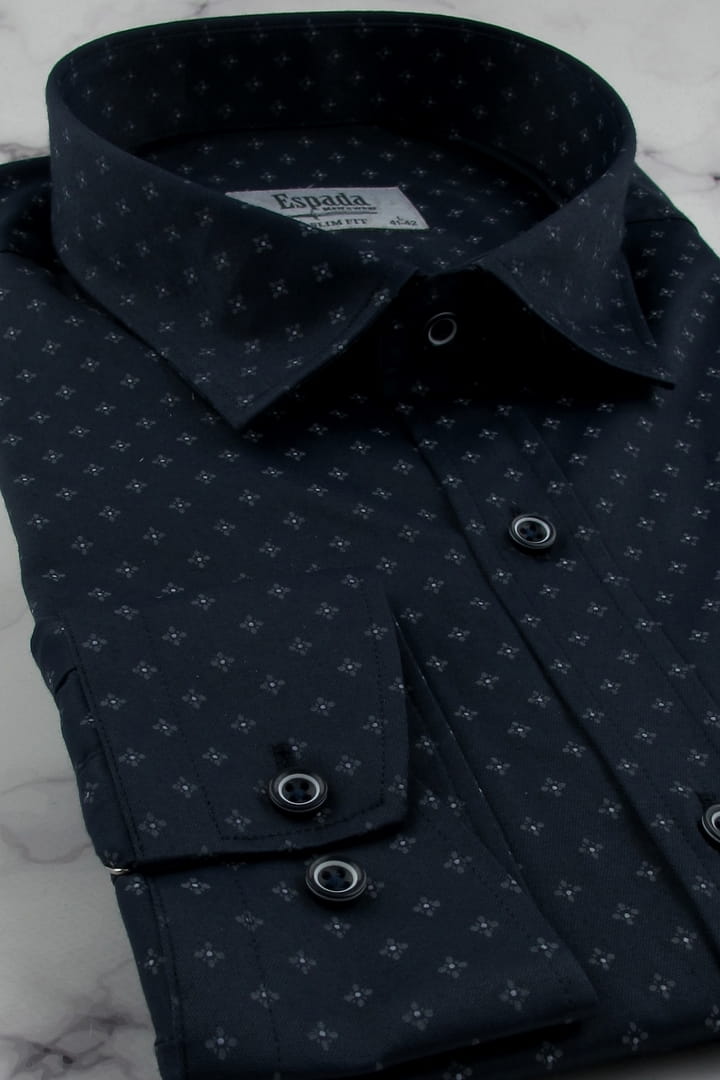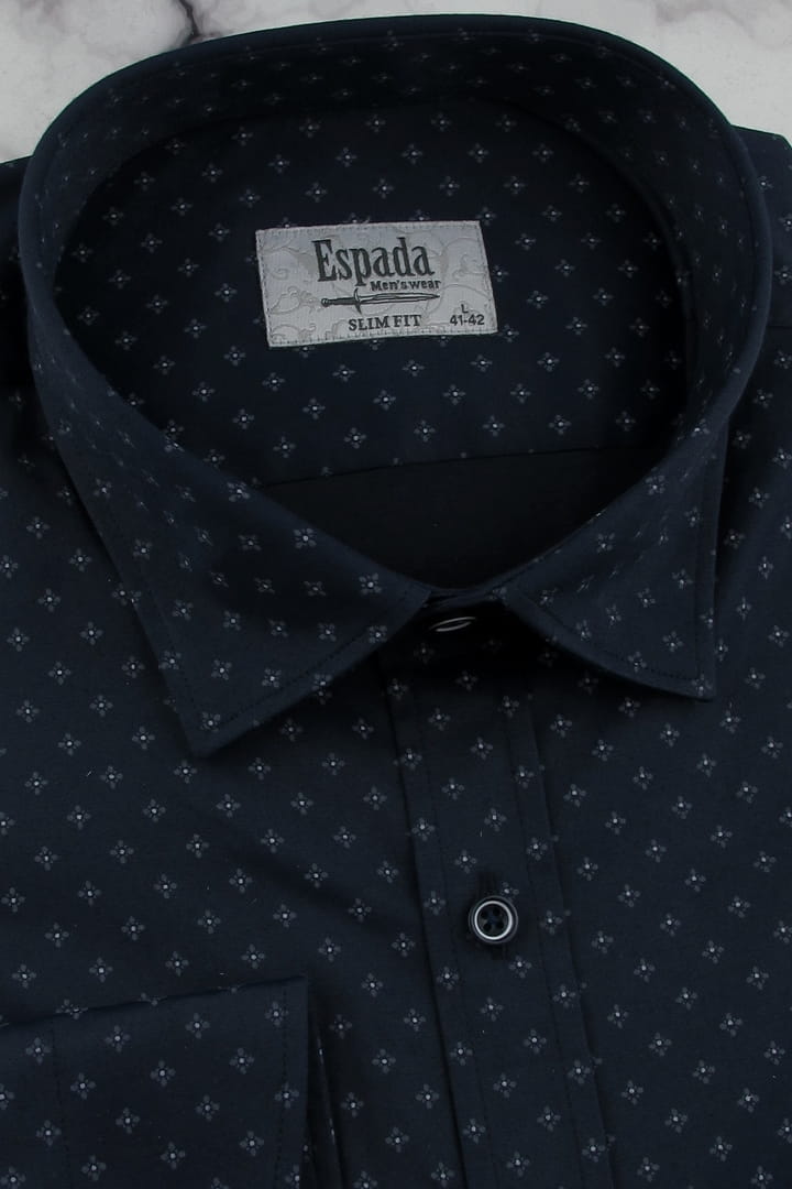 Koszula Męska Elegancka Wizytowa do garnituru granatowa we wzorki z długim rękawem w kroju SLIM FIT Espada Men's Wear H135