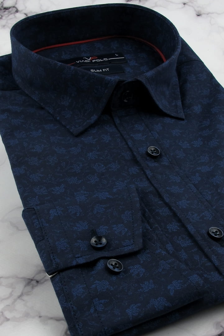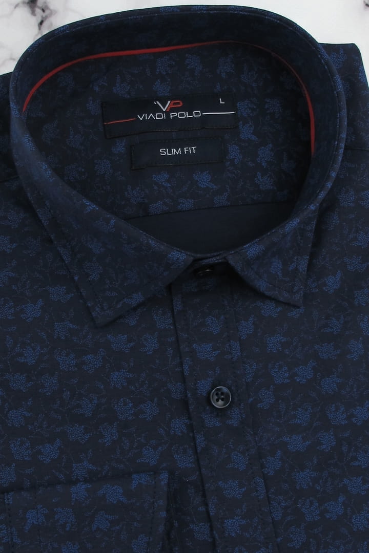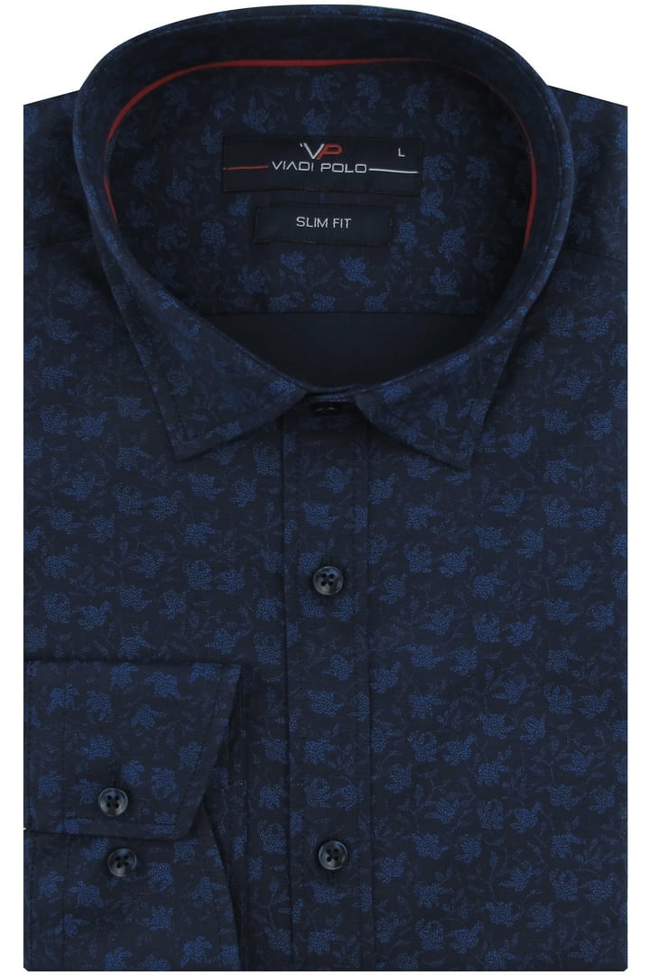 Koszula Męska Elegancka Wizytowa do garnituru granatowa we wzorki z długim rękawem w kroju SLIM FIT Viadi Polo H272