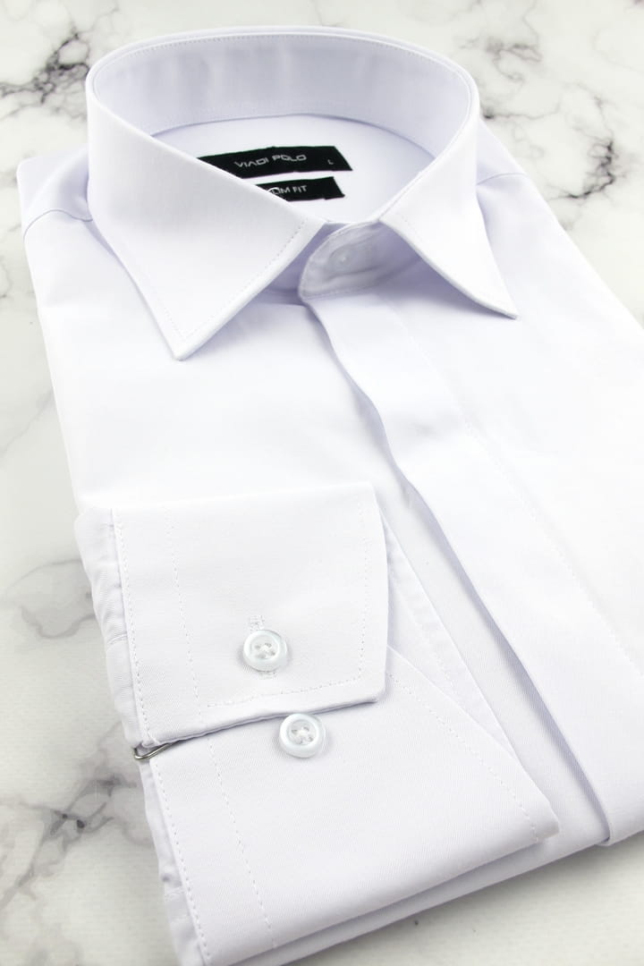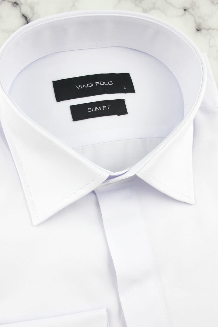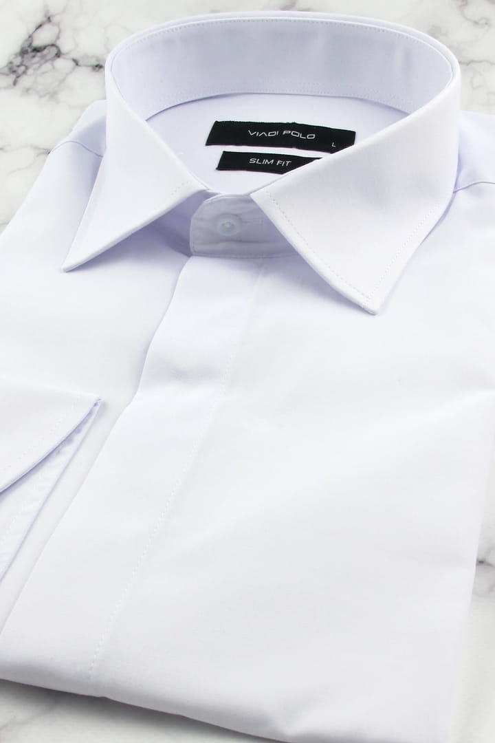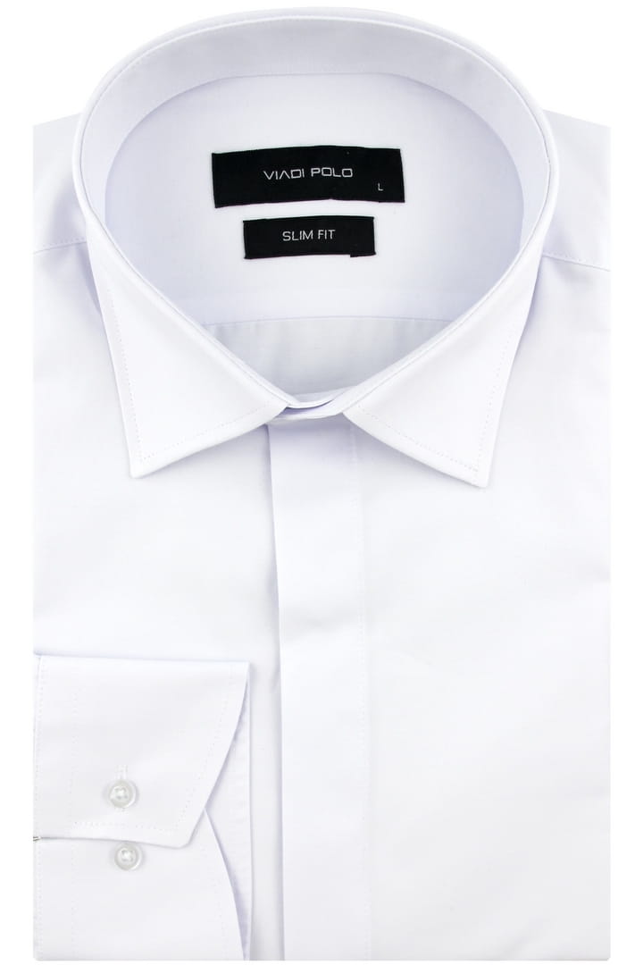 Koszula Męska Elegancka Wizytowa do garnituru z krytą plisą gładka biała z długim rękawem w kroju SLIM FIT Viadi Polo J381