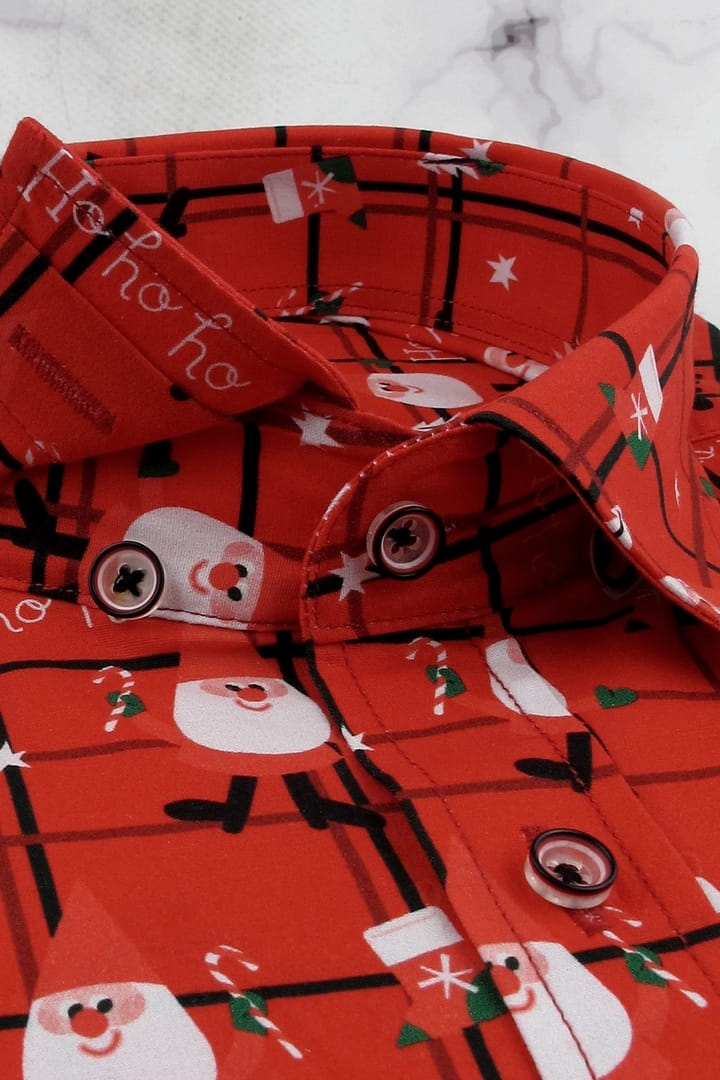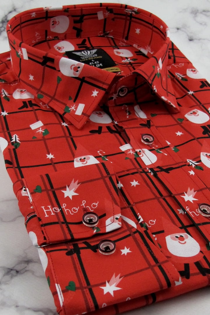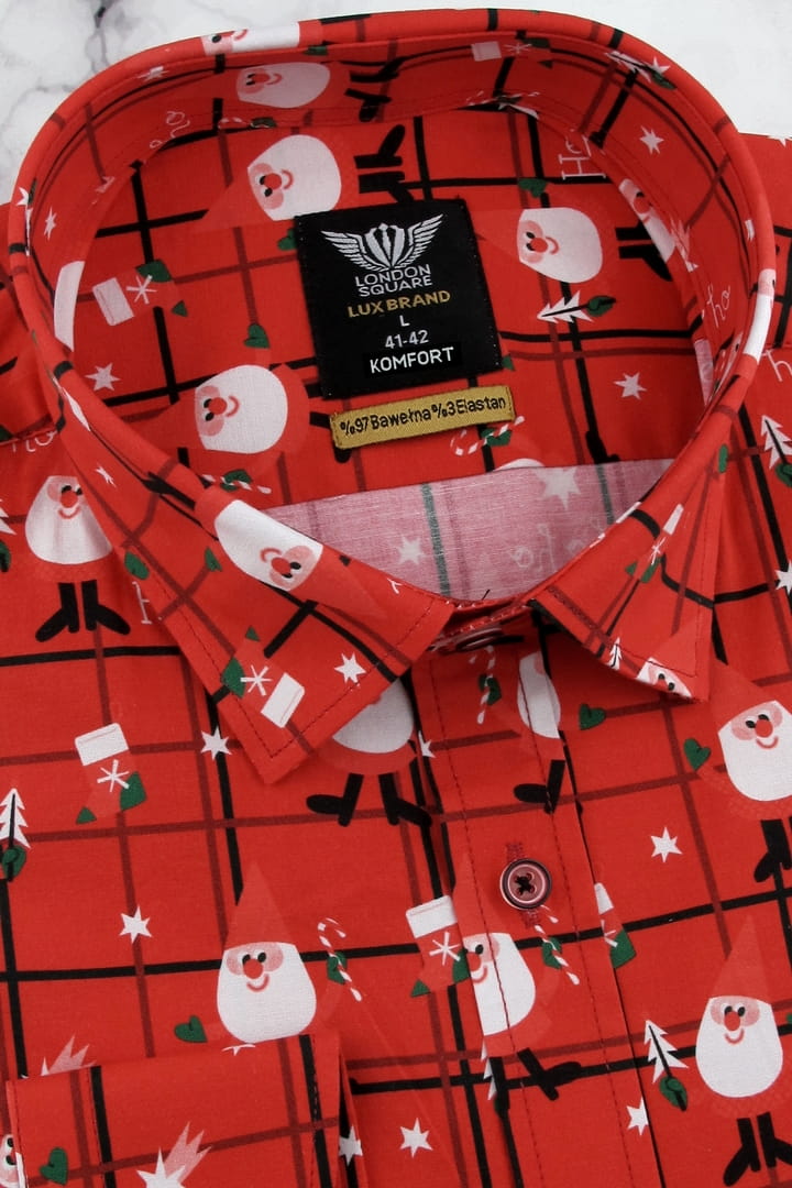 Koszula Męska Elegancka na Święta czerwona z Motywem Świątecznym z długim rękawem w kroju REGULAR London Square E995