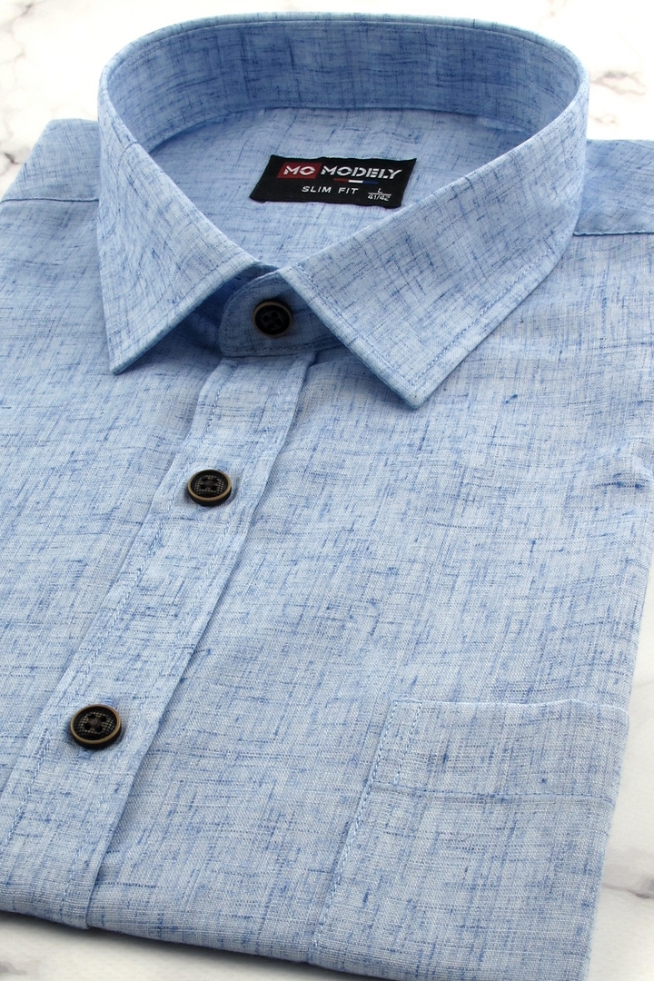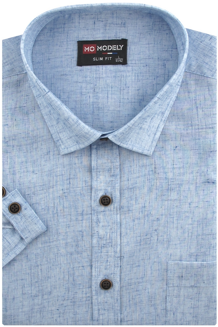 Koszula Męska Lniana Casual Gładka Błękitna Slim Fit Modely R372