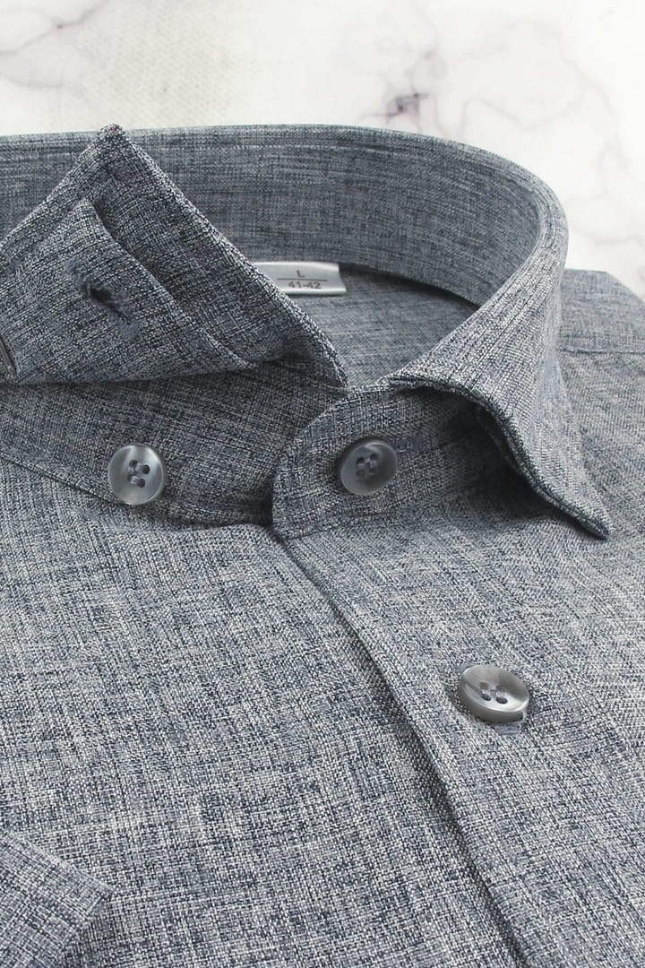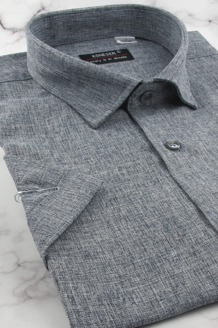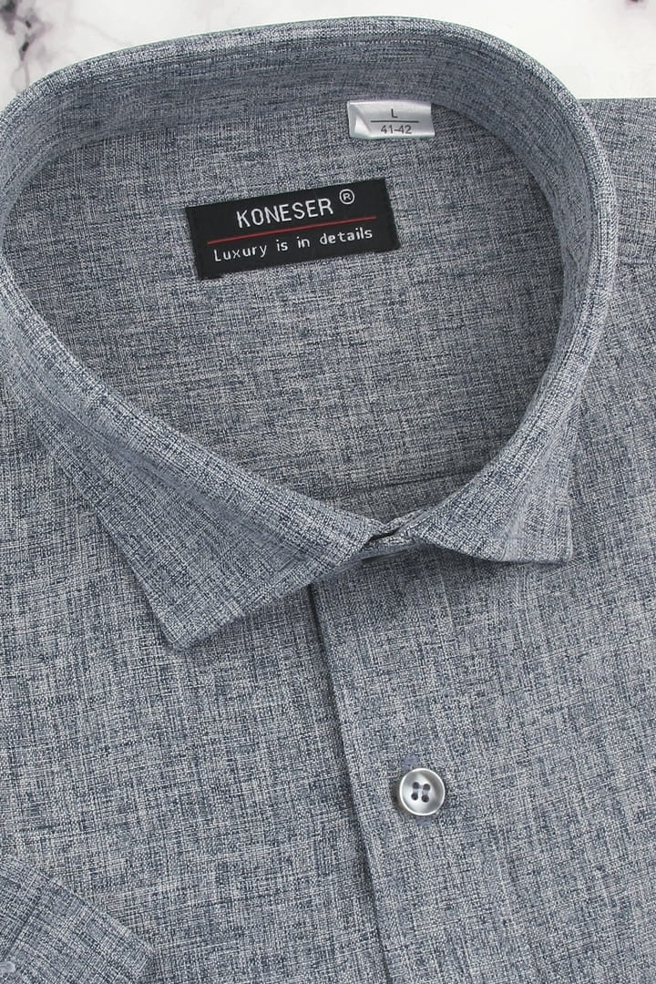 Koszula Męska Lniana Casual Gładka Grafitowa Regular Koneser R490