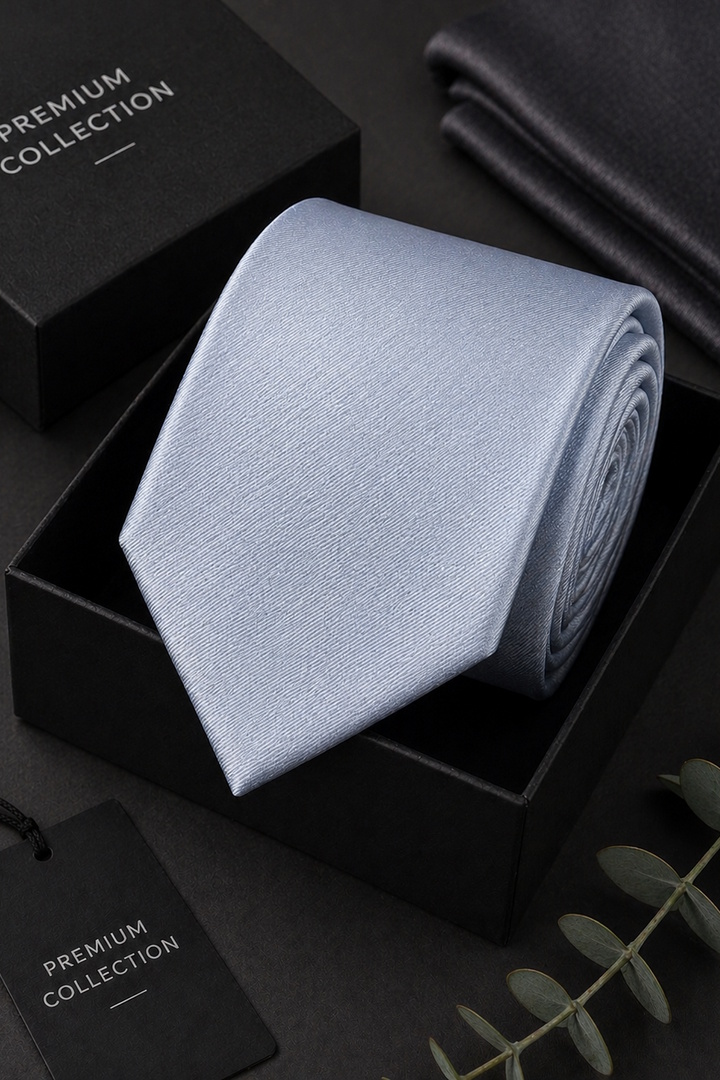 Krawat Męski Elegancki Modny Klasyczny Szeroki Gładki Błękitny Gołębi G735