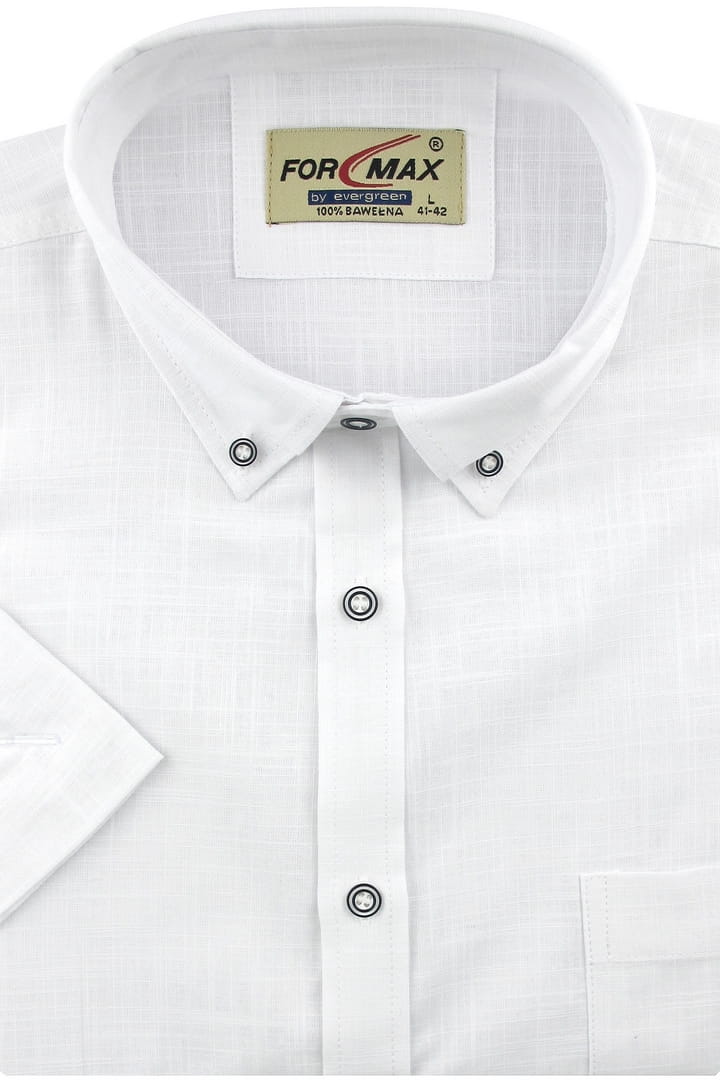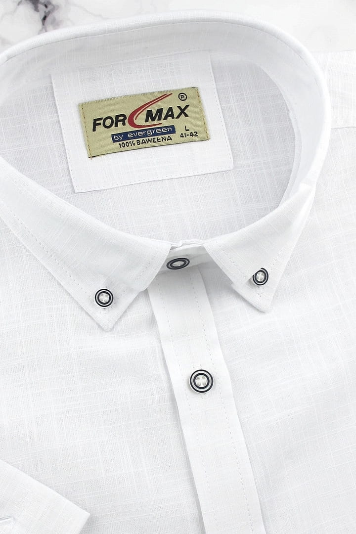 Lniana Duża Koszula Męska Codzienna Casual biała z krótkim rękawem Duże rozmiary Formax P993