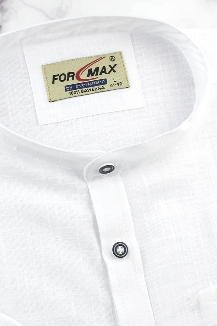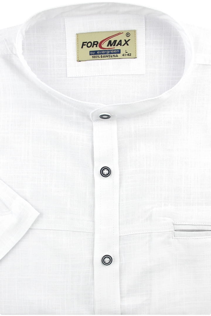 Lniana Duża Koszula Męska Codzienna Casual biała ze stójką z krótkim rękawem Duże rozmiary Formax P992