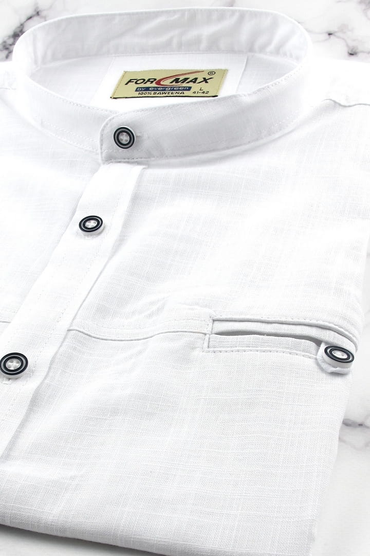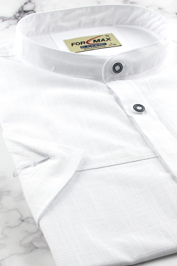 Lniana Koszula Męska Codzienna Casual gładka biała ze stójką z krótkim rękawem w kroju REGULAR Formax P990