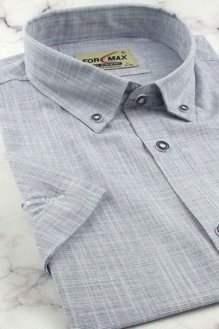 Lniana Koszula Męska Codzienna Casual jasna niebieska z krótkim rękawem w kroju REGULAR Formax R079