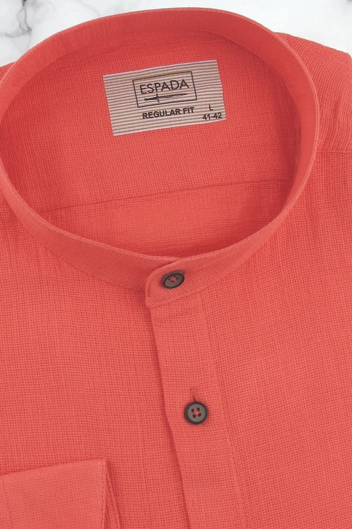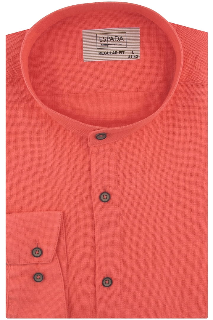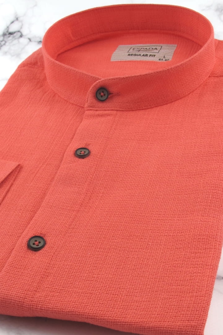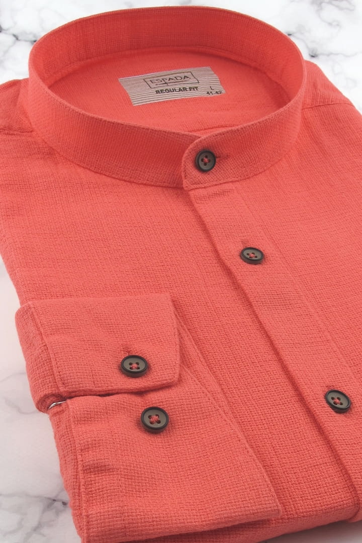 Lniana Koszula Męska Codzienna Casual ze stójką gładka koralowa z długim rękawem w kroju REGULAR Espada Men's Wear J353