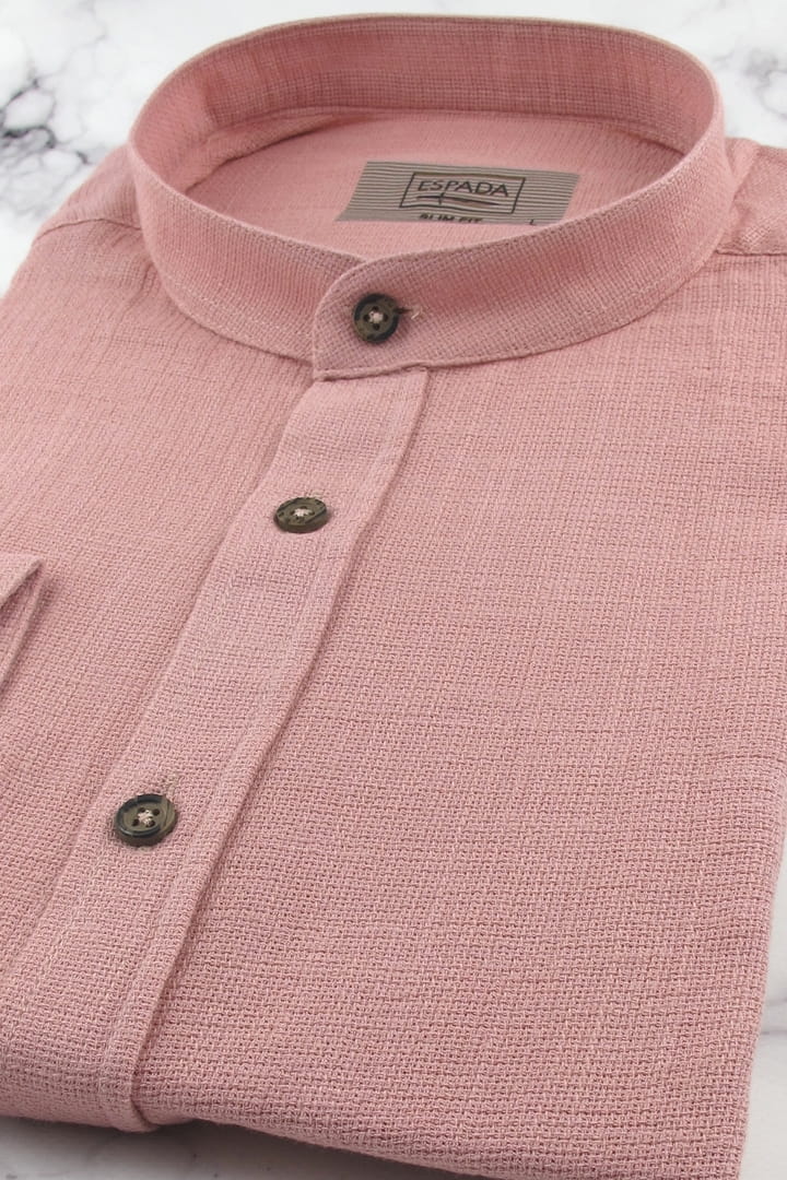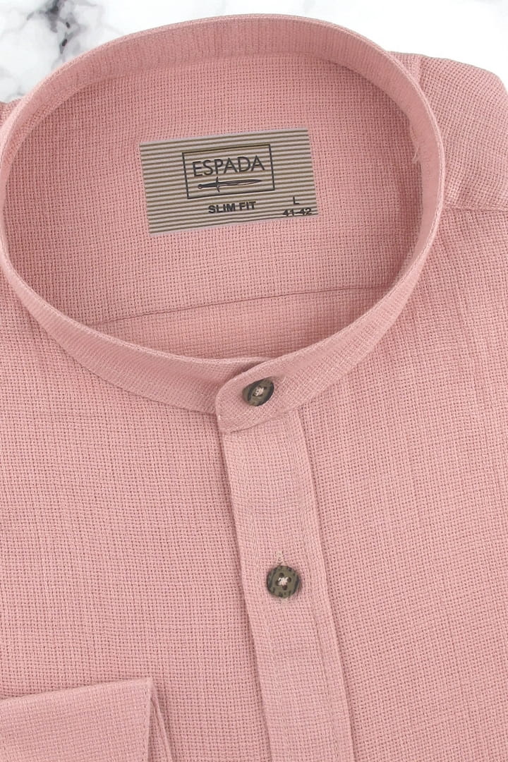Lniana Koszula Męska Codzienna Casual ze stójką gładka różowa brudny róż z długim rękawem w kroju SLIM FIT Espada Men's Wear J349