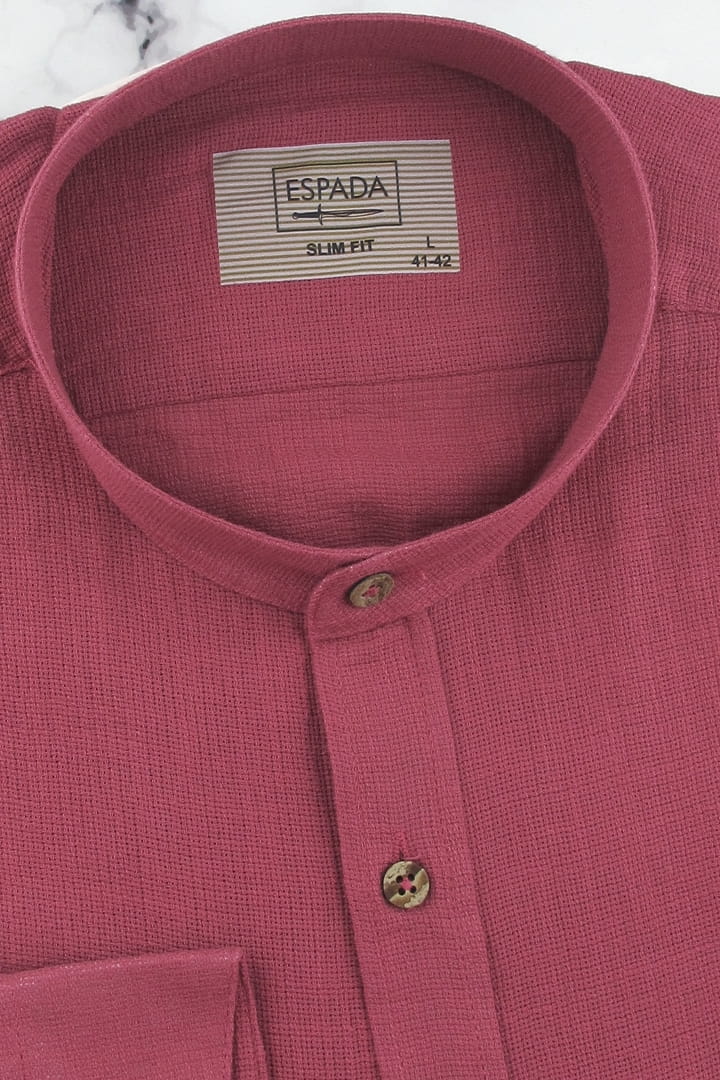 Lniana Koszula Męska Codzienna Casual ze stójką gładka różowa fuksja z długim rękawem w kroju SLIM FIT Espada Men's Wear J348