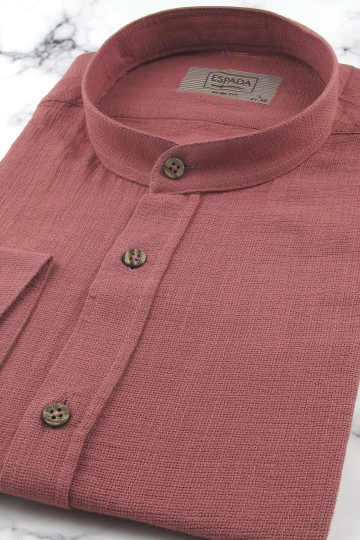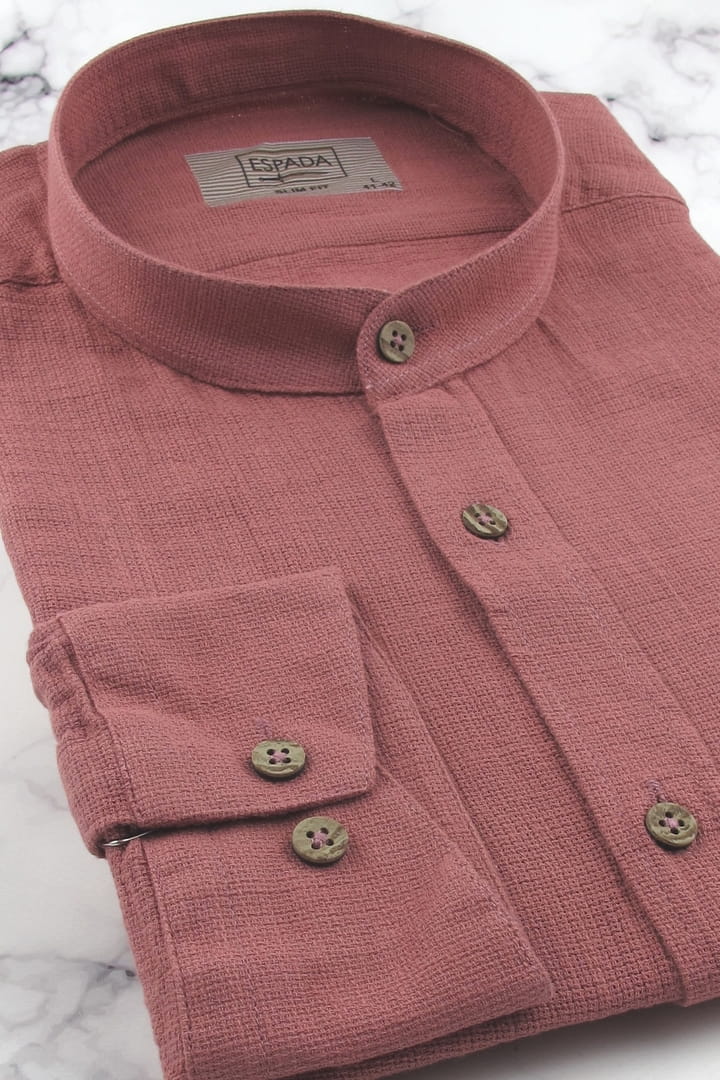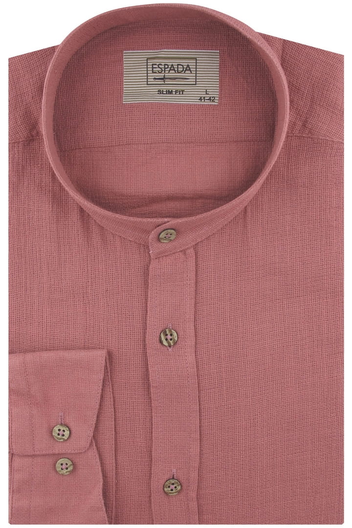 Lniana Koszula Męska Codzienna Casual ze stójką gładka różowa indyjski róż z długim rękawem w kroju SLIM FIT Espada Men's Wear J347